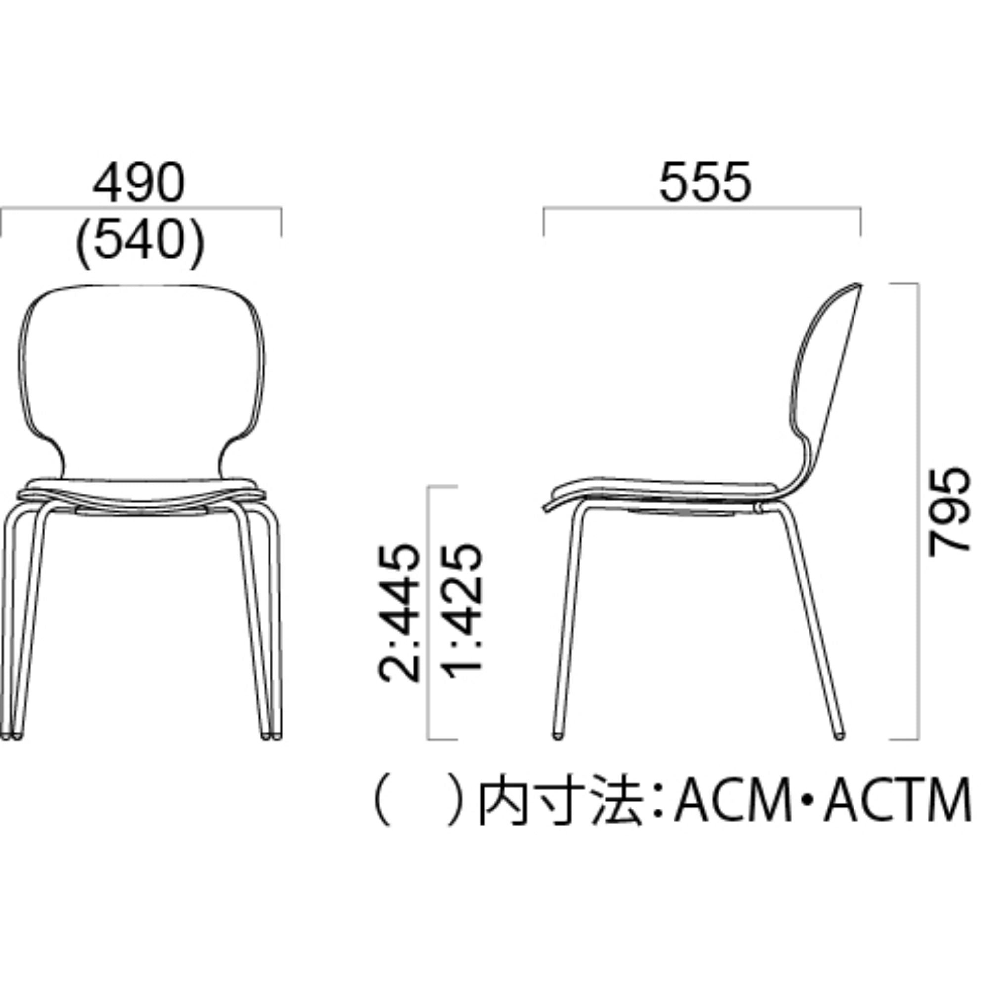 フレーム:スチールパイプ (クロムメッキ・DGダークグレー)本体:ブナ成形合板(艶消し仕上げ) 重量:板座5.6kg 張座6.5kgスタッキング 6脚まで可能