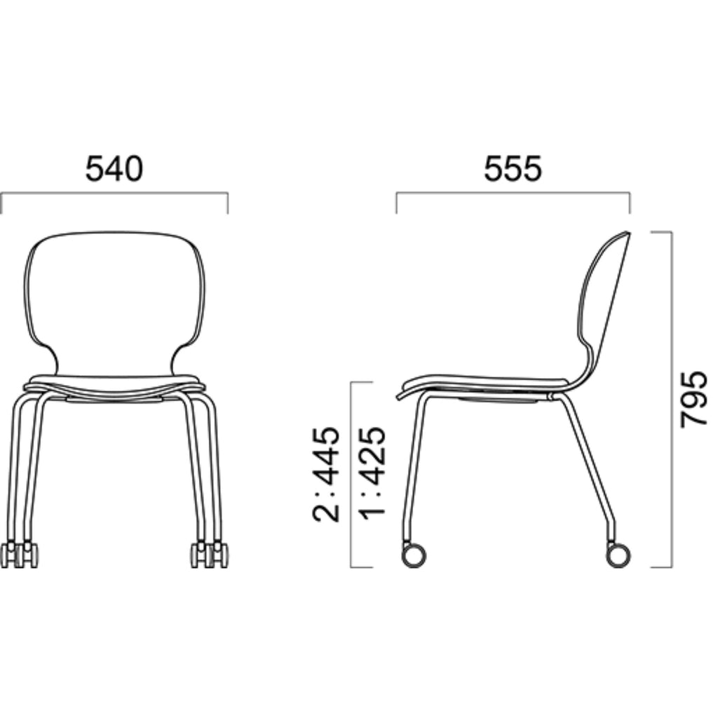 フレーム:スチールパイプ (クロムメッキ・DGダークグレー)本体:ブナ成形合板(艶消し仕上げ) 重量:板座5.8kg 張座6.7kgスタッキング 4脚まで可能
