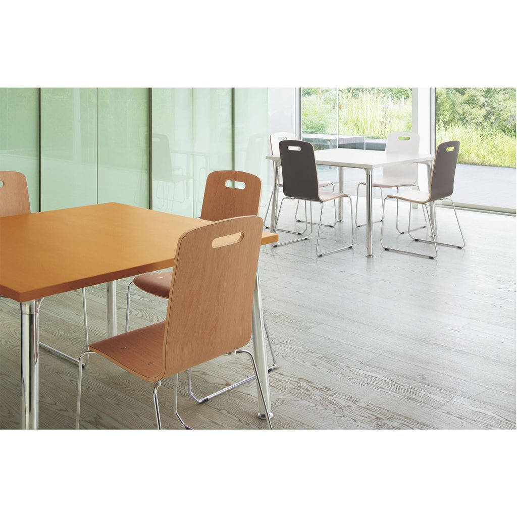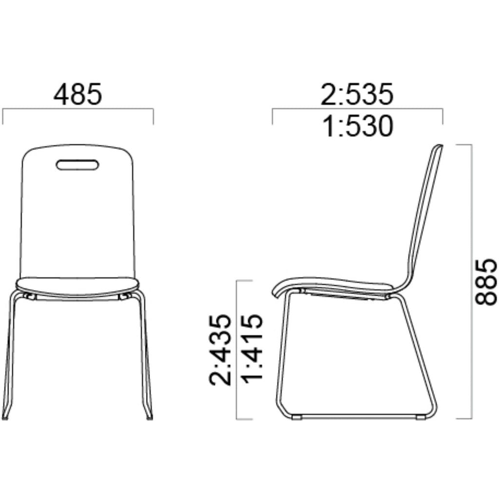 フレーム:スチールパイプ粉体塗装シルバー本体:ラバーウッド突板成形合板表面材:メラミン化粧板両面重量:板座6.0kg 張座:7.0kgスタッキング:6脚まで可能です。